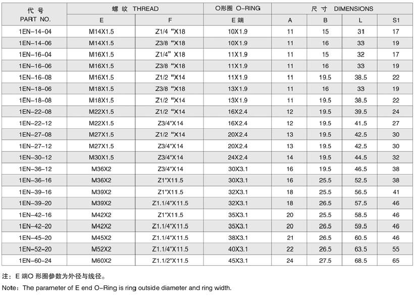 1EN 公制外螺纹O 形圈平面密封 /布锥管外螺纹